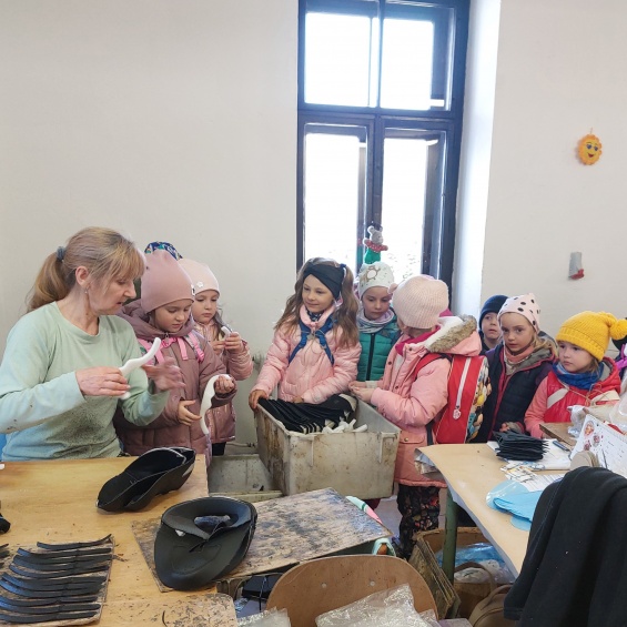 Deti najstaršej vekovej skupiny sa zúčastnili exkurzie vo firme Spasa s.r.o. na Hanulovej ulici. Mohli spoznať a presvedčiť sa, ako sa v súčastnosti vyrába obuv a niečo si aj vyskúšať.