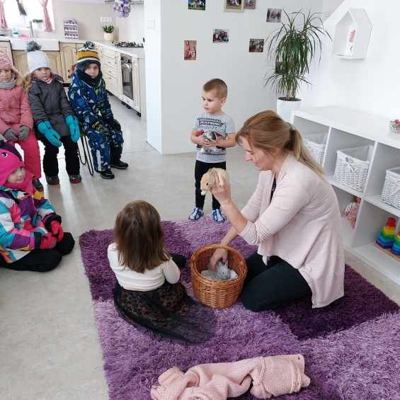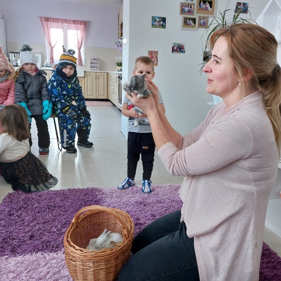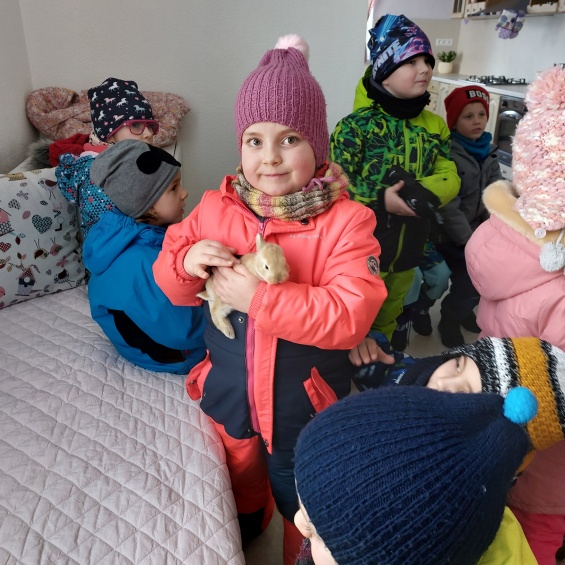 1.2.2023 deti najstaršej triedy navštívili svoju kamarátku Lianku. Jej mamka deťom ukázala krásnu zajačiu rodinku piatich malých zajačikov, ktorých mohli pohladkať, zobrať ich na ruky a pohrať sa s nimi.